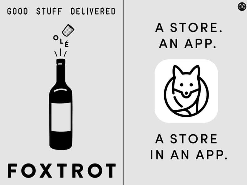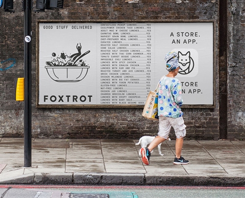 Their ad agency tells Printmag, “At the heart of the ‘Good Stuff Delivered’ campaign are new, simple yet tongue-in-cheek black and white illustrations inspired by Foxtrot's tightly defined aesthetic, done by Leo Burnett. While these playful graphics have always been Foxtrot's signature, the campaign turns them into larger-than-life expressions to capture the essence of delight that is core to the brand's foundation.